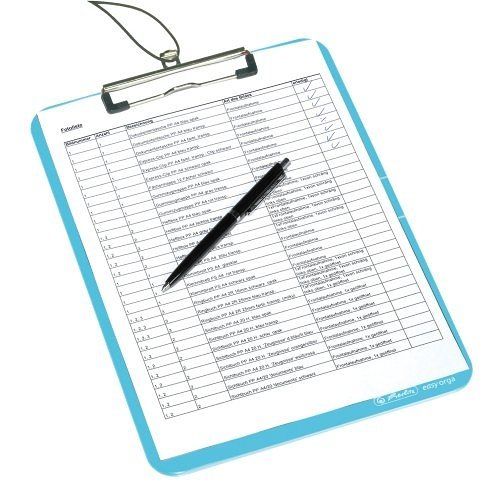 Podložka s klipem easy orga A4, pevný polystyren, úchyt na tužku, kapacita klipu 80 listů, transparentní - modrá