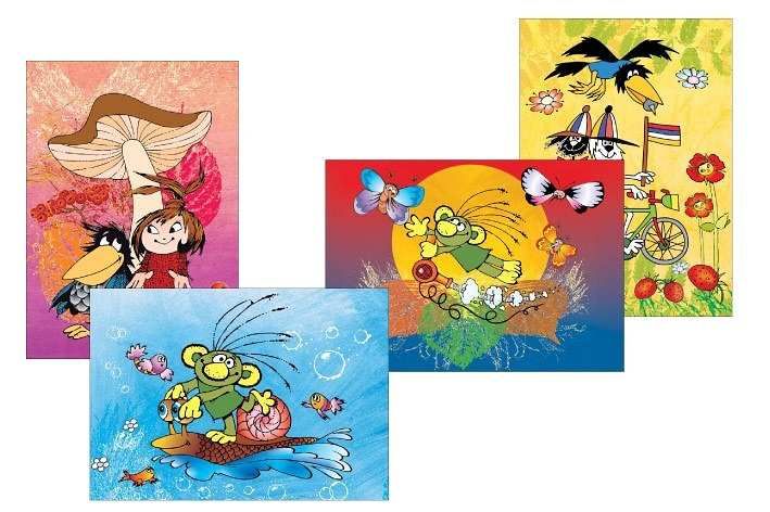 Pohled Večerníček - Rákosníček, Štaflík, Malá Čarodějnice, Křemílek