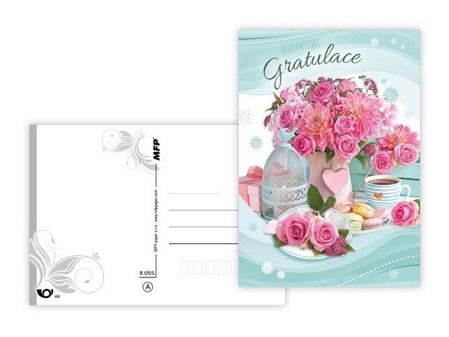 Srdečné pohlednice s textem. Text obsahují 3 pohledy z 6. Text na přední straně: Srdečná gratulace, Všechno nejlepší, Srdečné blahopřání Text na zadní straně: Pohlednice 1: Hodně štěstí, zdraví a radosti přeje Pohlednice 2: Všechno nejlepší a mnoho krásných dní přeje Pohlednice 3: Všechno nejlepší, hodně zdraví, štěstí a spokojenosti ze srdce přeje Pohlednice 4-6 bez textu Papír: pohlednicový karton 240 g Text: 3/6 Uvedená cena je za 1 ks.