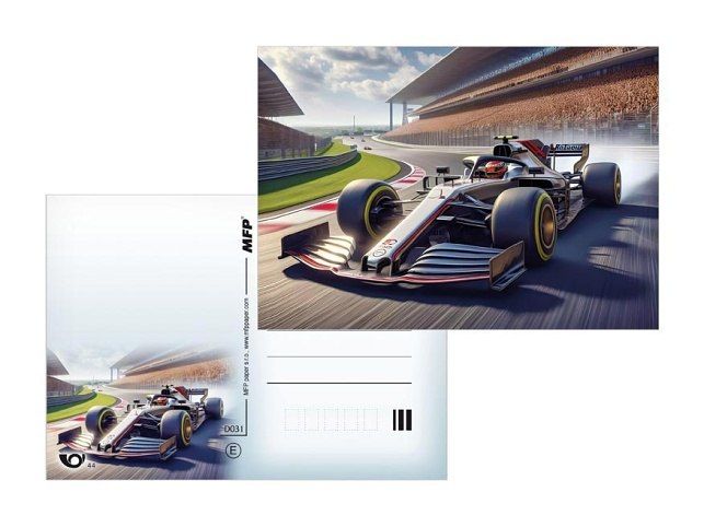 Pohlednice s motivy různých závodních prostředí (motorky, letadlo, formule…). Pohlednice jsou bez textu na zadní straně. Text: 0/6 Povrchová úprava: UV lak Papír: pohlednicový karton 240 g Uvedená cena je za 1 ks.