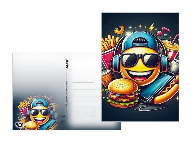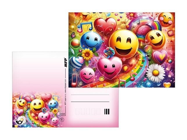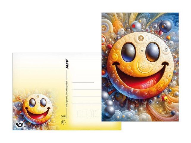 Pohlednice s motivem smajlíků. Pohlednice jsou bez textu na zadní straně. Text: 0/6 Povrchová úprava: UV lak Papír: pohlednicový karton 240 g Uvedená cena je za 1 ks.