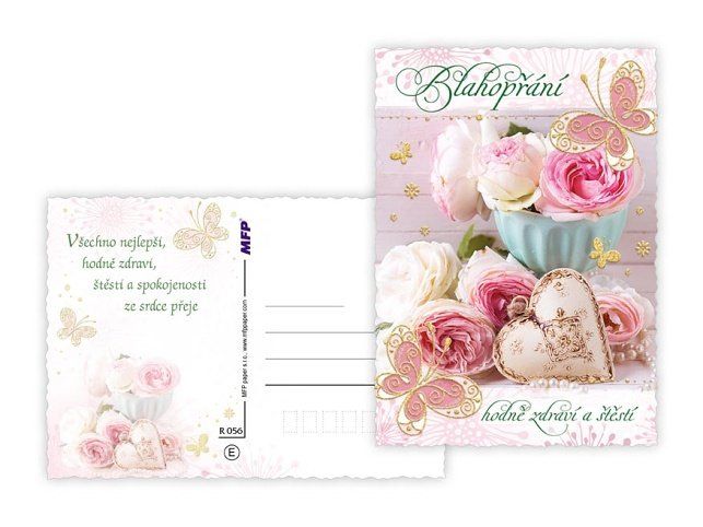 Srdečné glitrované pohlednice s výsekem. S textem jsou 4 pohledy z 6. Uvedená cena je za 1ks Papír: pohlednicový karton 240 g Povrchová úprava: UV lak, výsek, glitter Text: 4/6