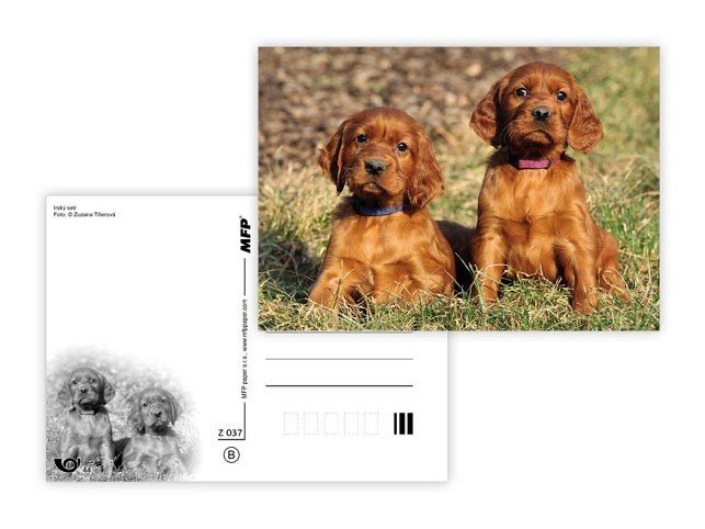 Pohlednice se zvířecími motivy. Na pohledech najdete obrázky psů a štěňat různých plemen. Pohlednice jsou bez textu na zadní straně. Papír: pohlednicový karton 300 g Povrchová úprava: UV lak Text: 0/6 Uvedená cena je za 1 ks.