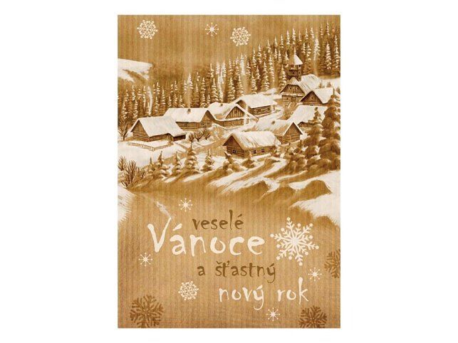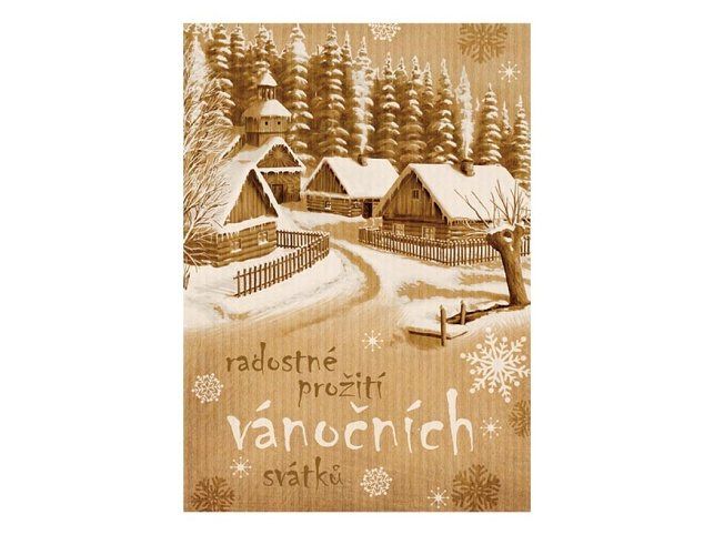 Pohlednice s vánočním motivem. Text obsahují 4 pohlednice z 6. Papír: pohlednicový karton 240 g Povrchová úprava: bez povrchové úpravy s nepravidelným výsekem Text: 4/6 Uvedená cena je za 1 ks.