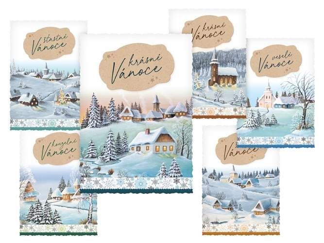 Pohlednice s vánočním motivem. Text obsahují 3 pohlednice z 6. Papír: pohlednicový karton 240 g Povrchová úprava: bez povrchové úpravy s nepravidelným výsekem Text: 3/6 Uvedená cena je za 1 ks.