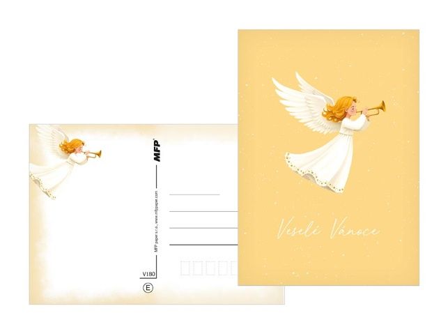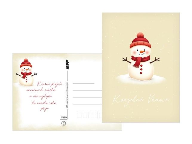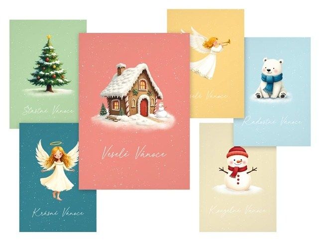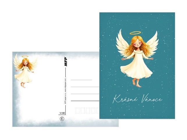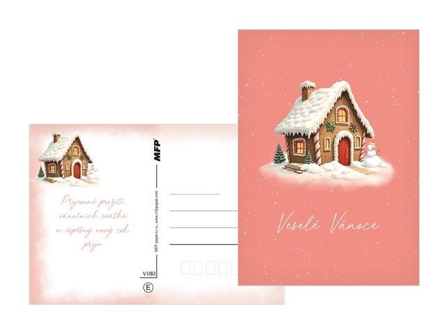 Potěší malé i velké! Vánoční pohlednice s roztomilými motivy andílků, zasněžených chaloupek, medvídků, sněhuláků nebo nazdobených stromečků vykouzlí úsměv na tváři a přinesou pravou sváteční náladu. Jemné barvy a hravé ilustrace dodají každému přání osobité kouzlo a radost, kterou ocení každý, kdo ji dostane. Text na zadní straně obsahují 3 pohlednice z 6. Text na přední straně: Šťastné Vánoce, Krádné Vánoce, Veselé Vánoce, Radostné Vánoce, Veselé Vánoce, Kouzelné Vánoce Text na zadní straně: Pohlednice 1: Příjemné prožití vánočních svátků a úspěšný nový rok přeje Pohlednice 2: Veselé Vánoce a šťastný nový rok přeje Pohlednice 3: Krásné prožití vánočních svátků a vše nejlepší do nového roku přeje Pohlednice 4 - 6 bez textu Text: 3/6 Papír: pohlednicový karton 240 g Povrchová úprava: matné lamino + lesklý UV lak Uvedená cena je za 1 ks.