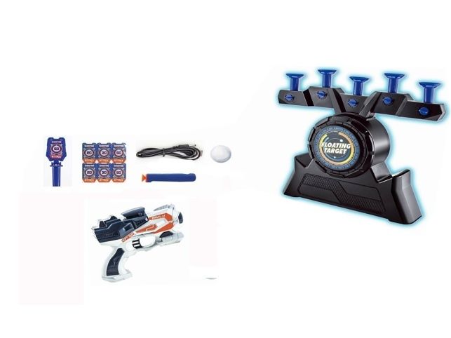 Sada obsahuje terč (výška 30 cm), 2 pistole, šipky a míček. Lze nabíjet přes USB kabel či pomocí baterií – baterie nejsou součástí balení. Na baterie: 4x AA (nejsou součástí balení)