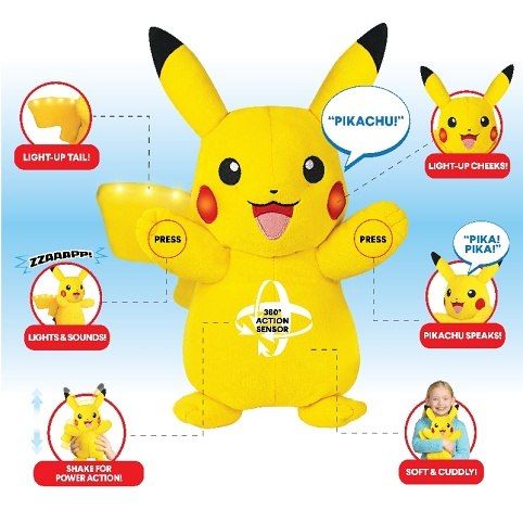 Sní vaše dítě o tom, že si zahraje roli hlavní Pokémona? Dejte mu jedinečného maskota představujícího nejlepšího přítele Ashe Ketchuma - Pikachu. Roztomilý Pikachu je nejuznávanějším Pokémonem v sérii. Má úžasnou elektrickou sílu, která mu umožňuje porazit v boji i ty nejtěžší protivníky. Vyznačuje se leskle žlutou srstí, ocasem ve tvaru blesku, špičatýma ušima s černou špičkou a především červenými tvářemi. Maskot Pikachu zaujme vaše dítě mnoha interakcemi. Hračka má vestavěné pohybové senzory, zaujme zvukovými a světelnými efekty. Od této chvíle bude moci vaše dítě a jeho plyšový pokémon trávit každou volnou chvíli spolu zábavou zároveň.
