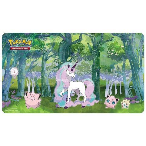 Oficiálně licencovaný produkt Pokémon Trading Card Game. Grafika s Pokémony - Galarian Rapidash, Jigglypuff, Clefairy, Swirlix a Cutiefly. Vršek podložky je vyrobený z měkké tkaniny a pomáhá tak chránit karty během hry. Spodek je naopak opatřený protiskluzovým materiálem, aby se hrací podložka během používání neposouvala. Lze využít i jako výborná podložka pod myš na doma či do kanceláře. Velikost podložky 60x35 cm.