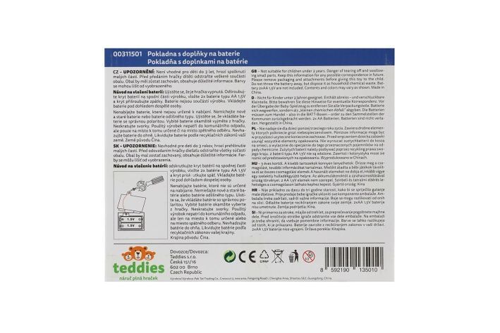Na baterie - 2 ks baterií typu AA 1,5V - baterie nejsou součástí výrobku