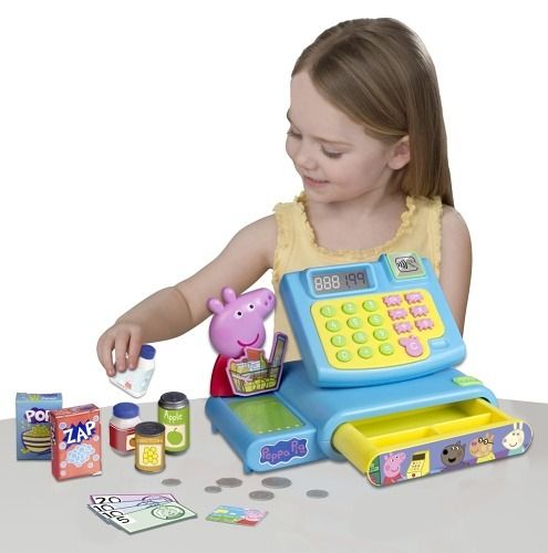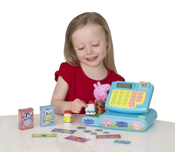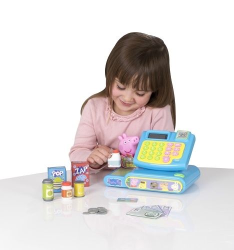 Pokladna s oblíbeným motivem prasátka Peppy. Součástí pokladny je funkční kalkulačka, scanner a platit můžete Pepinými penězi nebo platební kartou. Provoz na 2× AAA baterie – součástí balení. Vhodné od 3 let. Na baterie: 2x AAA (jsou součástí balení)