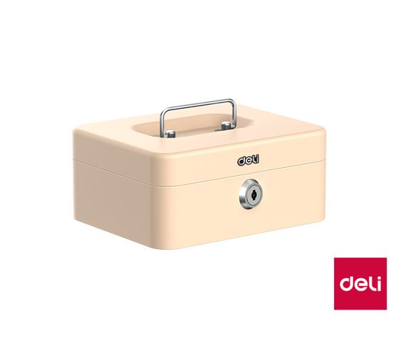 Přenosná pokladna s přihrádkami na mince- silný dvouplášťový materiál- zaoblené hrany- 2 klíče součástí- 5 přihrádek- kovová rukojeť- rozměr: 200 x 90 x 160mm- tloušťka: 0,8mm- hmotnost: 0,9kg- materiál: ocel- barva: krémová