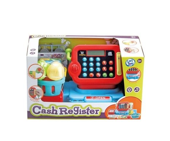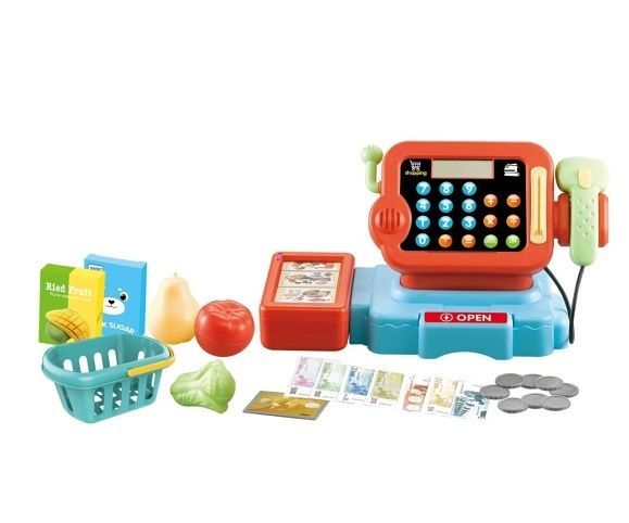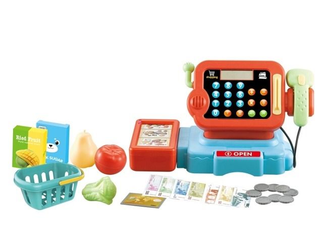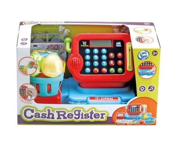 Pokladna má přihrádku na peníze, skener na produkty, čtečku kreditních karet se zvukovým efektem, LCD display, pokladní pás. Vhodné pro děti od 3 let. Výrobek je na 2 tužkové baterie (nejsou součástí balení). Na baterie: 2x AA (nejsou součástí balení)