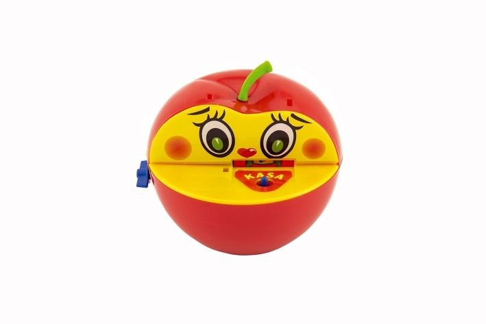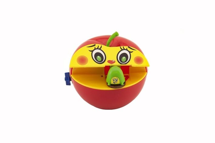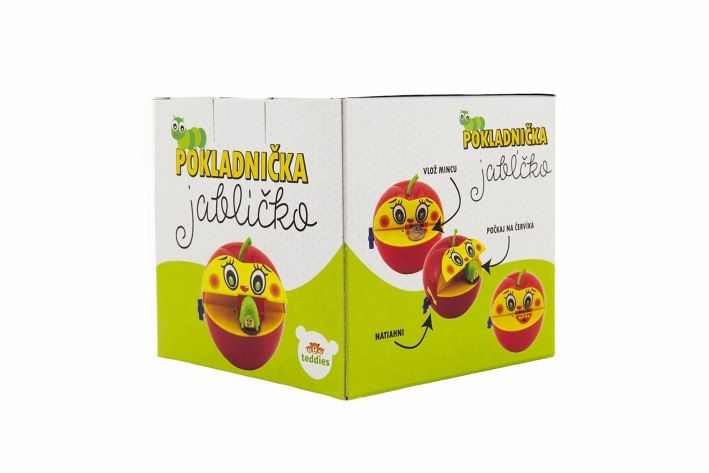 Plastová pokladnička jablko má mechanické natahování na klíček. Po vložení mince si červík minci vezme a ukryje ji v jablku. Mince lze vyndat po odklopení víčka na dně pokladničky.