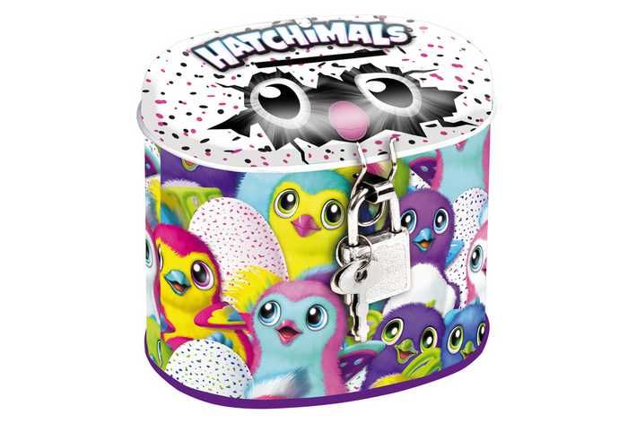 Oválná, lakovaná, kovová pokladnička s víkem uzamykatelným na zámek s 2 klíčky. Perfektní dárek, který naučí děti šetřit a peníze jsou tak v bezpečí. Pokladnička je zdobena pohádkovými postavičkami.