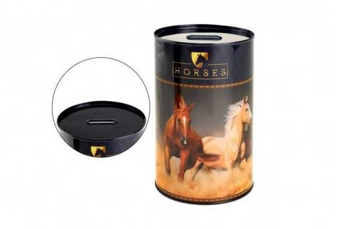 Kovová pokladnička s koňským motivem. Vhodné od 3 let.