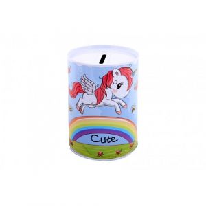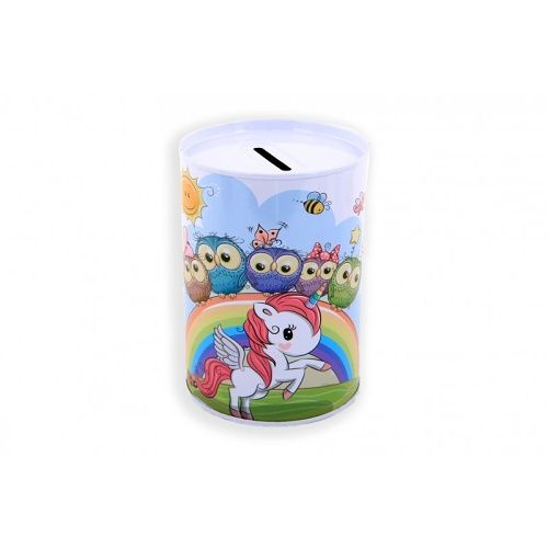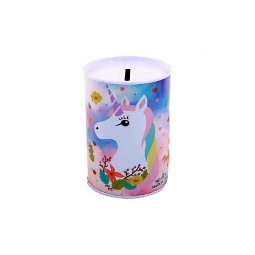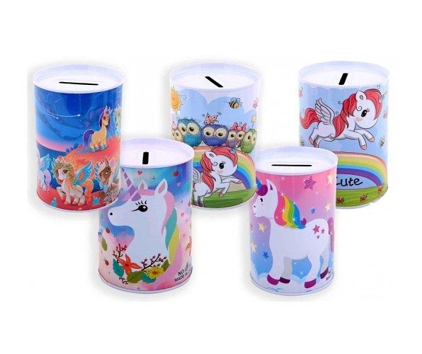Pokladnička plechová s motivem jednorožců, 5 druhů, 8,5x12 cm