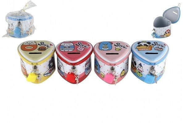 Pokladnička plechová srdce se zámkem 8x7cm 4 barvy v sáčku