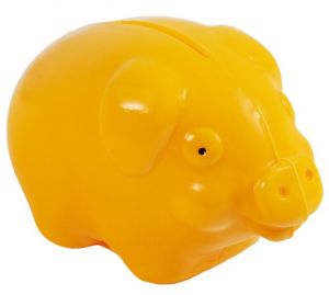 Žluté prasátko je připraveno jako pokladnička pro první úspory malých dětí.
