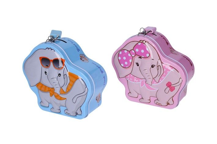 Pokladnička slon ve 2 různých barvách - modrá a růžová.