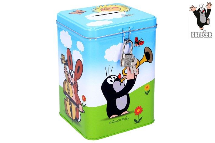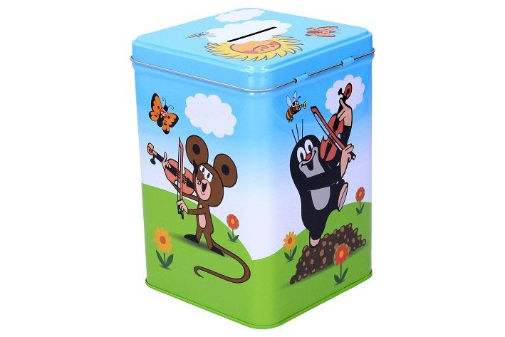 Plechová pokladnička s motivem Krtečka. S touto pokladničkou našetříte určitě spoustu peněz.