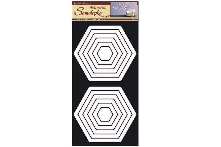 Samolepky na zeď šestúhelníky bílé, 69x32 cm. Snadné použití! Vhodné na stěny, okna, zrcadla, kachličky a jiné hladké plochy! NÁVOD: Opatrně sejměte samolepku z podkladového papíru a umístěte ji na zvolenou suchou a čistou plochu. Vyhlaďte od středu ke krajům.