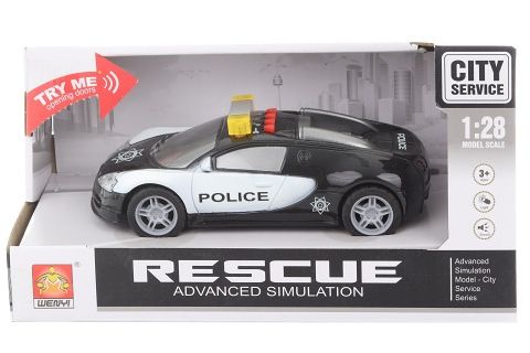 Policejní auto na baterie (3x AG13), jsou součástí balení. Auto po stisknutí tlačítek na střeše vydává zvuky a svítí. Měřítko 1:28. Rozměry auta cca 15 x 4,5 x 7 cm. Rozměry balení cca 22 x 12 x 9,5 cm.Věk 3+