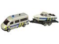 Policejní auto s přívěsem a lodí, světlo a zvuk, volná kola 20x3x3cm