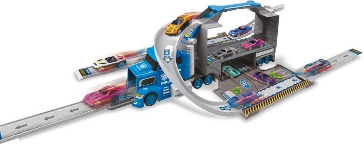 Policejní kamion se 4 auty a dopravními značkami: Ultimátní zážitek pro malé strážce zákona! Představujeme vám revoluční policejní kamion 2v1 s příslušenstvím! Vážení rodiče a milovníci kvalitních hraček, připravte se na to, že vaše dítě bude mít o zábavu postaráno na dlouhé hodiny. Náš policejní kamion 2v1 není jen obyčejná hračka - je to brána do světa vzrušujícího policejního dobrodružství! Co dělá tento policejní kamion tak výjimečným? 1. Multifunkční design: Tento kamion není jen vozidlo - je to plně vybavená policejní stanice na kolech! Po rozložení se promění v impozantní garáž o rozměrech 86 × 38 × 18 cm, poskytující dostatek prostoru pro všechny policejní operace. 2. Kompletní sada: V balení najdete nejen kamion, ale i 4 kovové modely autíček v měřítku 1:64. Tyto detailně zpracované miniatury dodají hře na policii autentický nádech. 3. Realistické detaily: Součástí sady je arch samolepek, díky kterým můžete kamion a autíčka ozdobit podle svých představ. Vytvořte si vlastní policejní oddělení! 4. Kvalitní zpracování: Vyrobeno z odolných materiálů, které vydrží i ty nejdivočejší policejní honičky. 5. Vzdělávací aspekt: Hra s tímto setem rozvíjí motorické dovednosti, kreativitu a sociální interakci vašeho dítěte.