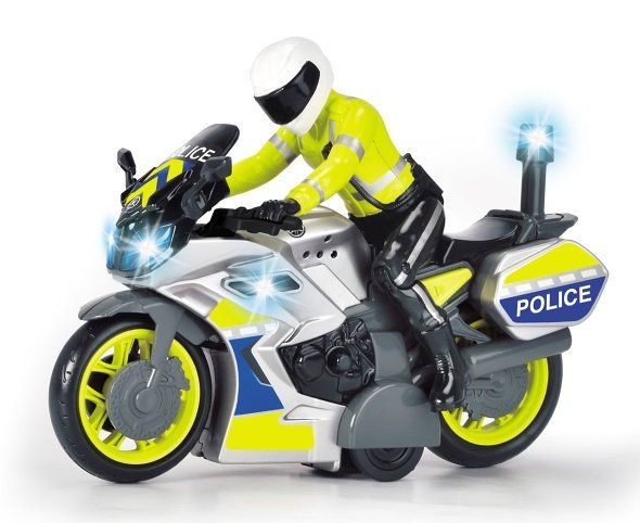 Motorka Yamaha na setrvačník, se světlem a zvukem, s pohyblivou figurkou řidiče. Délka 17 cm.