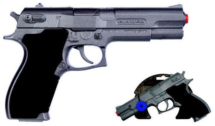 Policejní pistole – kovová, stříbrná, matná na kapsíly – osm