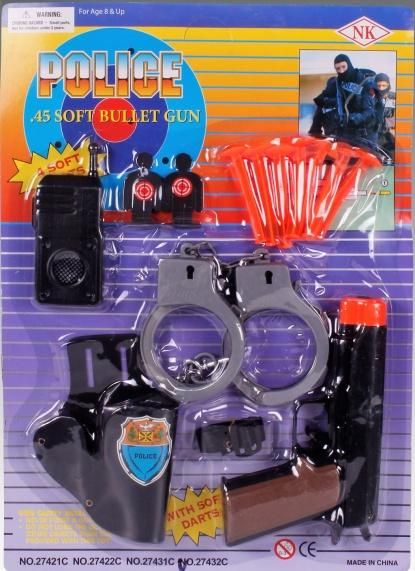 Policejní sada obsahuje vysílačku, pistolku s šipkami a
