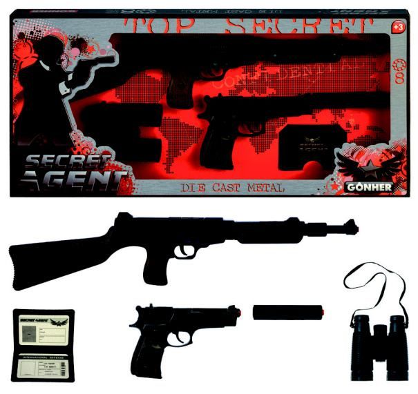 Policejní sada Top secret obsahuje kovovou policejní pistoli, tlumič,