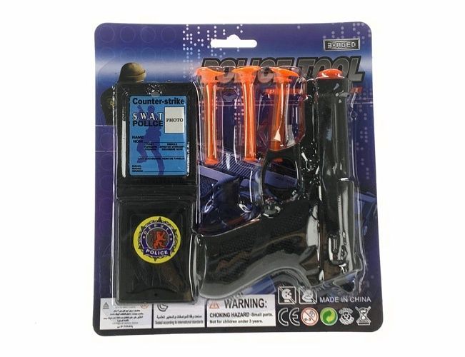 Sada pro malé policisty. Součástí sady je pistole, 4 náboje a odznak. Vhodné pro děti od 3 let.