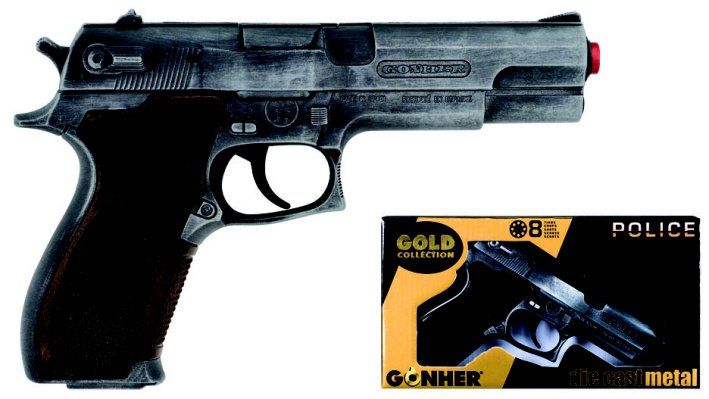 Policejní pistole z edice Gold edition – kovová, stříbrná, na