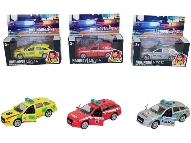 Novinka z řady City Collection! Autíčko policie, ambulance nebo hasiči v českém designu. Pořiď si všechna autíčko do své sbírky záchranných aut! Pohon autíčka je na zpětných chod, u autíčka lze otevřít dveře.