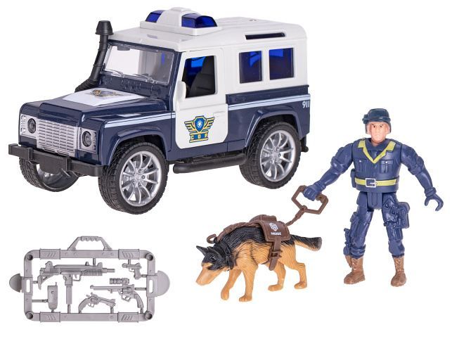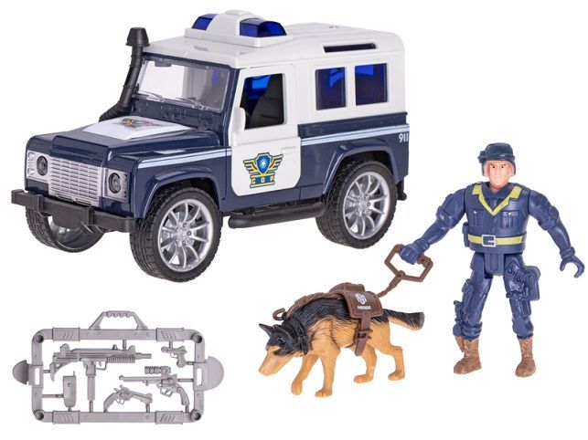 Policie dodávka 17cm na setrvačník na baterie se světlem a zvukem s doplňky v krabičce