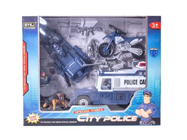 Policie vozidla volný chod 3ks s doplňky v krabičce