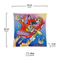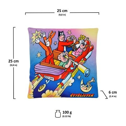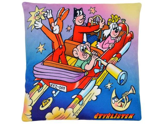 Měkoučký polštářek, vhodný do postýlky, na cesty i jako dekorace do pokojíčku. Materiál mikrovelur, obrázek tisk, náplň duté vlákno. Zadní strana žlutá.