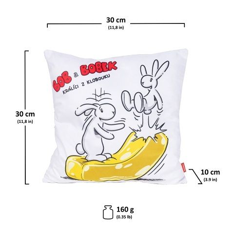 Měkoučký polštářek s motivem králiků z klobouku Boba a Bobka. Vhodný do postýlky, na cesty i jako dekorace do dětského pokojíčku. Materiál mikrovelur, obrázek tisk, náplň duté vlákno.