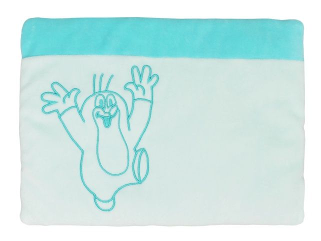 Nízký polštářek z heboučkého mikroveluru, v jemných tónech vhodných pro holčičky i pro chlapečky, s decentní výšivkou jásajícího Krtečka. Rozměr: 32x22cm. Materiál: 67 % bavlna, 33 % polyester. Pratelné na 40C.