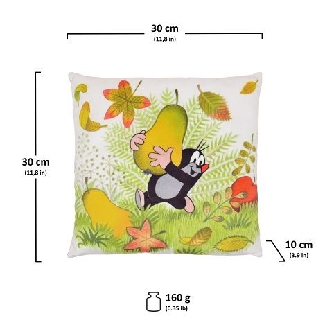 Měkoučký polštářek s motivem oblíbeného Krtečka, vhodný do postýlky, na cesty i jako dekorace do pokojíčku. Materiál mikrovelur, obrázek tisk, náplň duté vlákno. Zadní strana oranžová.
