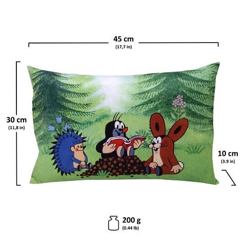Měkoučký polštářek s motivem oblíbeného Krtečka, vhodný do postýlky, na cesty i jako dekorace do pokojíčku. Materiál mikrovelur, obrázek tisk, náplň duté vlákno.