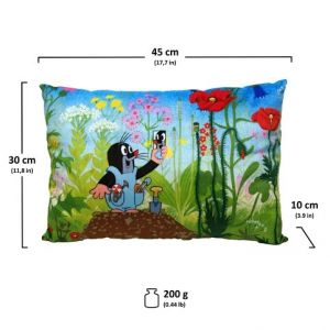 Měkoučký polštářek s motivem oblíbeného Krtečka, vhodný do postýlky, na cesty i jako dekorace do pokojíčku. Materiál mikrovelur, obrázek tisk, náplň duté vlákno. Zadní strana zelená.