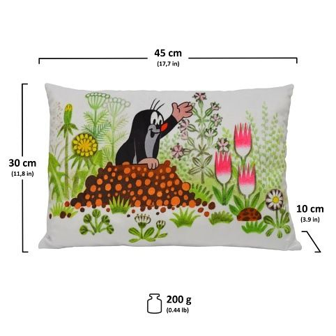 Měkoučký polštářek s motivem oblíbeného Krtečka, vhodný do postýlky, na cesty i jako dekorace do pokojíčku. Materiál mikrovelur, obrázek tisk, náplň duté vlákno.
