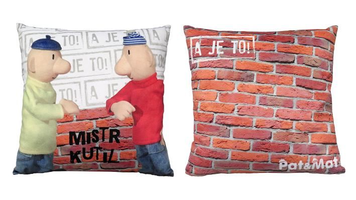 Měkoučký polštářek s oboustranným potiskem motivem oblíbených kutilů Pata a Mata. Vhodný do postýlky, na cesty i jako dekorace do pokojíčku. Materiál mikrovelur, obrázek tisk, náplň duté vlákno.