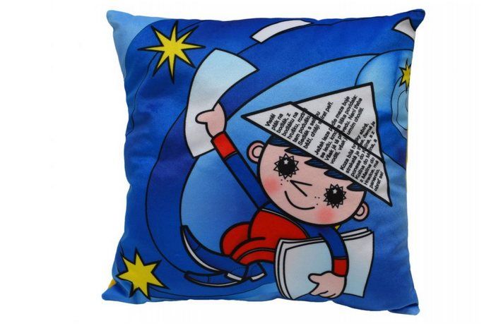 Měkoučký plyšový polštářek, vhodný do postýlky, na cesty i jako dekorace do pokojíčku. Materiál mikrovelur, obrázek tisk, náplň duté vlákno, zadní strana žlutá. Pratelný na 40°C.