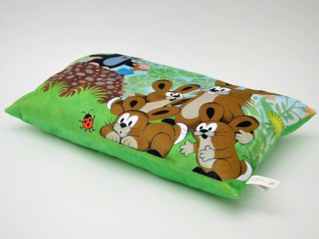 Měkoučký polštářek s motivem oblíbeného Krtečka, vhodný do postýlky, na cesty i jako dekorace do pokojíčku.