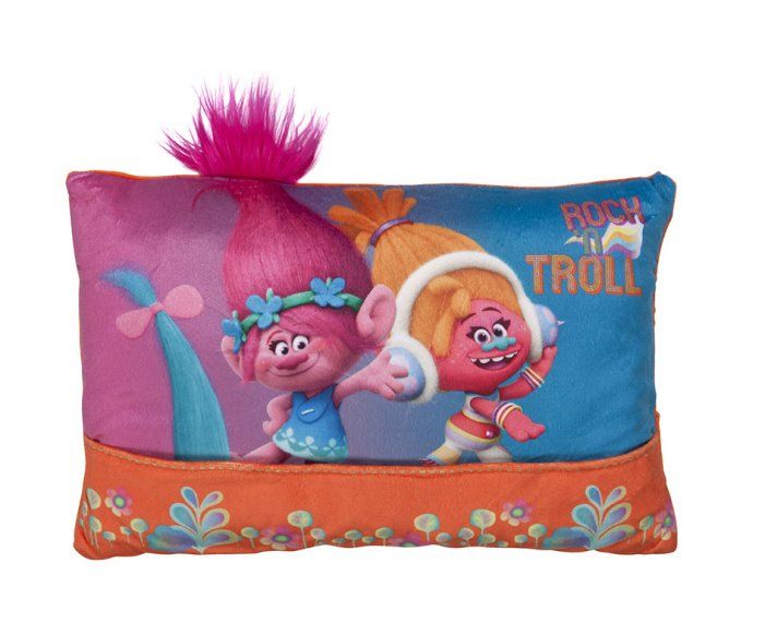 Měkký polštářek s motivem oblíbených postaviček Trollů s kapsou