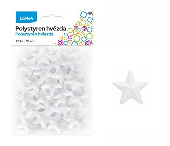 Polystyrenové hvězdy vhodné k sezónním dekoracím, aranžování a k využití v ruční výtvarné tvorbě. Hvězdy lze různě dekorovat, pomalovat, polepit.Průměr: 3,5cm